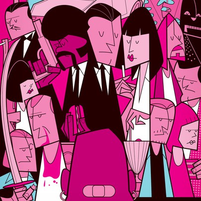 Ilustraciones de películas, cada una entonada en un color, con un estilo muy vertical y de estética retro, de la mano de Ale Giorgini